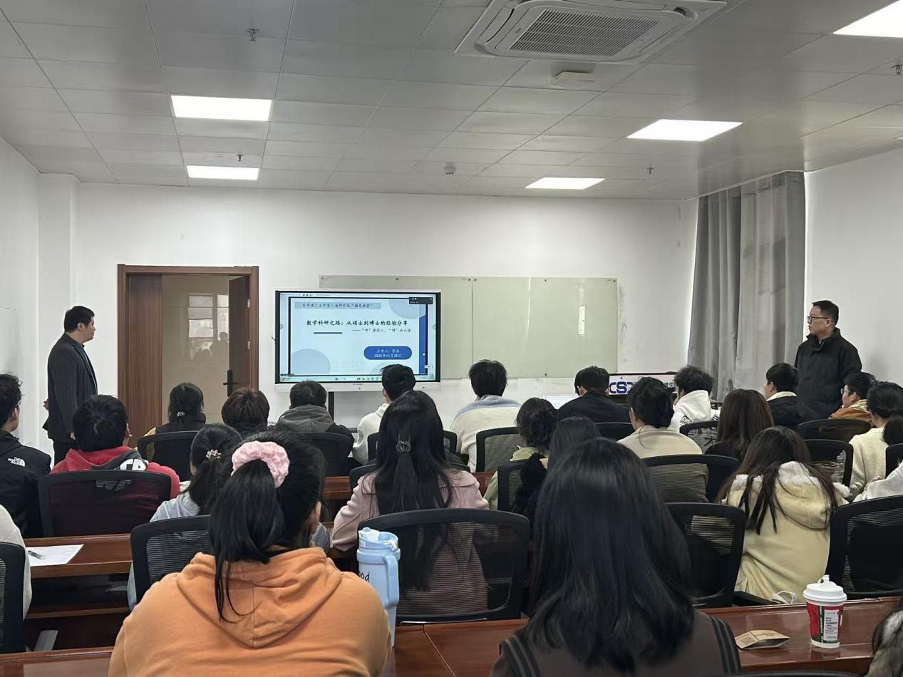 11月25日下午三点,理学院在学院报告厅举办研究生励志讲堂,特邀优秀毕业生张森、谢冰为在校数学研究生分享深造与科研经验。活动由理学院张建华副院长主持,现场氛围热烈,为同学们的 “研” 途规划提供了有益参考。